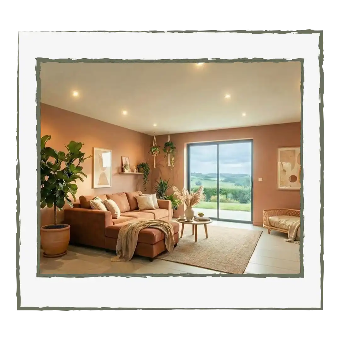 • Claire, graphiste de métier, a imaginé l’intérieur comme une composition visuelle. Elle a joué avec les couleurs, les textures et la lumière pour créer une atmosphère apaisante, moderne, mais chaleureuse.